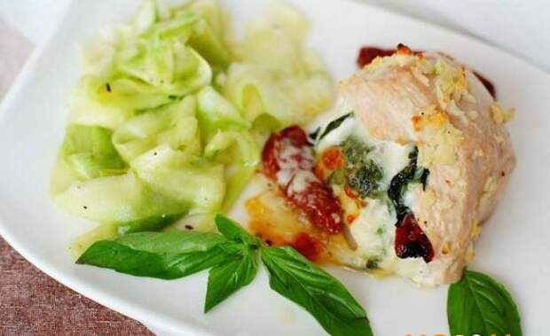 Ароматное и сочное филе индейки, фаршированное ароматной зеленью, моцареллой и чесноком, запеченное в духовке с минимальным количеством масла, является прекрасным диетическим блюдом.
