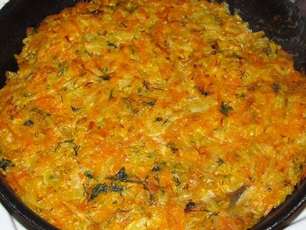 - Сковородку с маслом кунжутным разогреваем. Выкладываем овощи и пассируем 5-6 минут.
