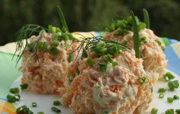 Один из простых, но не менее вкусных салатов – сочетание мелкозернистого творога с сочной хрустящей морковью. Это блюдо можно сделать на завтрак, подать в качестве гарнира, сервировать на ужин. Используя не слишком жирные по консистенции продукты – творог и сметану для заправки, закуска получится еще и диетической.